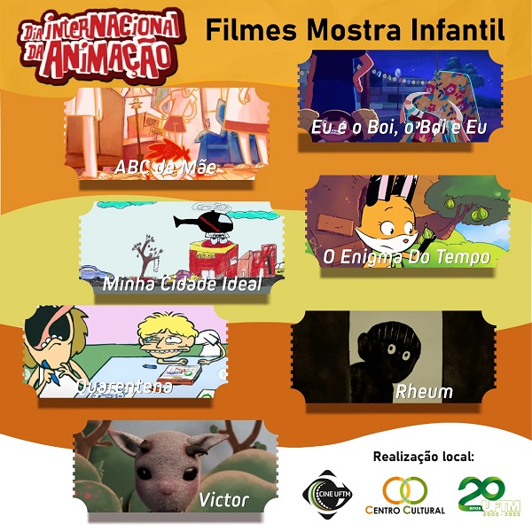 O Cine UFTM (2ª edição) dá continuidade à sua programação em 2025 com a exibição da Mostra “Dia Internacional da Animação (DIA)”, um evento que celebra a produção internacional e nacional de curtas-metragens animados. As sessões acontecem no dia 28 de outubro, com entrada gratuita, aberto à comunidade interna e externa.