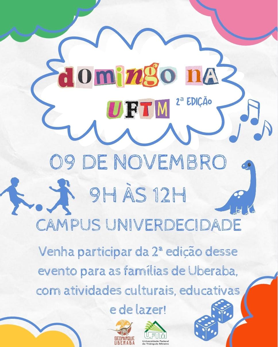 A Universidade Federal do Triângulo Mineiro (UFTM) realizará, no dia 9 de novembro de 2025, a segunda edição do evento “Domingo na UFTM”, iniciativa que busca promover a aproximação entre a comunidade local e a Universidade por meio de atividades culturais, esportivas e de lazer. Nesta ocasião, a Pró-reitoria de Extensão Universitária convida docentes, discentes e técnicos-administrativos, interessados em participar, a submeterem propostas de atividades até o dia 2 de novembro, por meio de formulário.