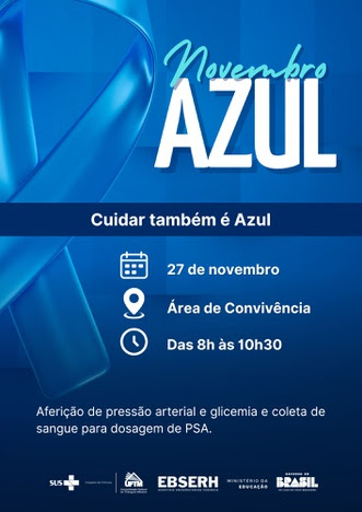 O Hospital de Clínicas da Universidade Federal do Triângulo Mineiro (HC-UFTM), vinculado à Empresa Brasileira de Serviços Hospitalares (Ebserh), realizará no dia 27 de novembro, das 8h às 10h30, o evento "Cuidar também é Azul", com foco na conscientização sobre o câncer de próstata e na saúde integral do homem. Voltado para a comunidade hospitalar, o evento será realizado na área de convivência do HC-UFTM.