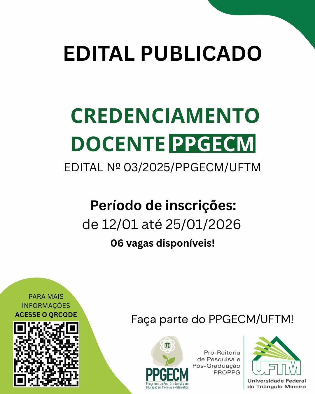 Seleção de docentes para o Programa de Pós-Graduação em Educação em Ciências e Matemática (PPGECM)
