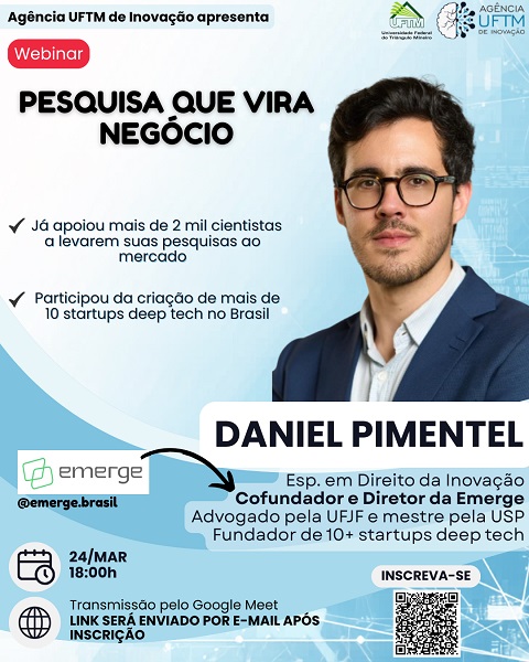 A Agência UFTM de Inovação (AGUIN) promove o encontro on-line às 18 horas do dia 24 de março “Pesquisa...