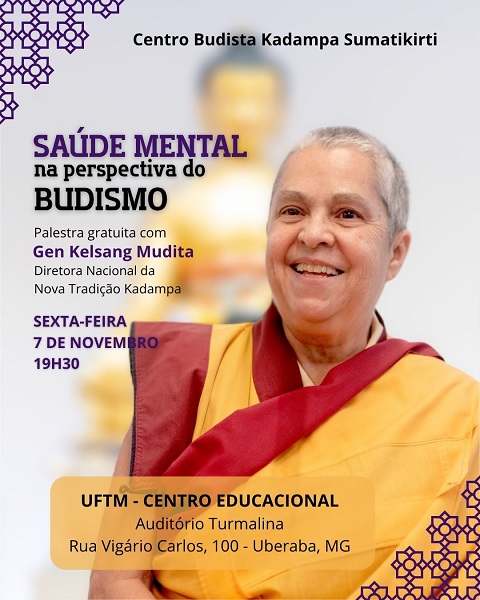 A palestra para a comunidade interna e externa da UFTM pretende propor uma reflexão sobre o paradoxo entre o progresso material e a falta de felicidade correspondente, apresentando a visão budista como uma alternativa para resolver essa contradição. "Talvez seja a hora de percebermos, que ao contrário do que acreditamos e pensamos, felicidade e paz mental, não vem de conquistas exteriores. Ouvir e compreender o que Buda nos diz sobre a nossa mente, nos possibilita enxergar o mundo sob uma nova perspectiva que muda radicalmente nossas crenças e valores e por conseguinte, nossas ações no mundo", pontuou a palestrante, Gen Kelsang Mudita, diretora da Nova Tradição Kadampa no Brasil.