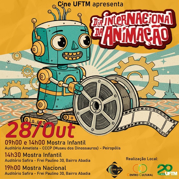 O Cine UFTM (2ª edição) dá continuidade à sua programação em 2025 com a exibição da Mostra “Dia Internacional da Animação (DIA)”, um evento que celebra a produção internacional e nacional de curtas-metragens animados. As sessões acontecem no dia 28 de outubro, com entrada gratuita, aberto à comunidade interna e externa.
