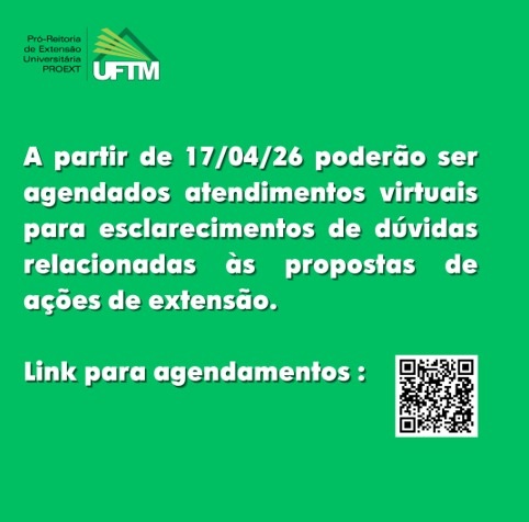 A Pró-reitoria de Extensão Universitária da UFTM, por meio do Departamento de Desenvolvimento da Extensão Universitária (DDEX) iniciará a execução do projeto de extensão “Tira Dúvidas PROEXT”.