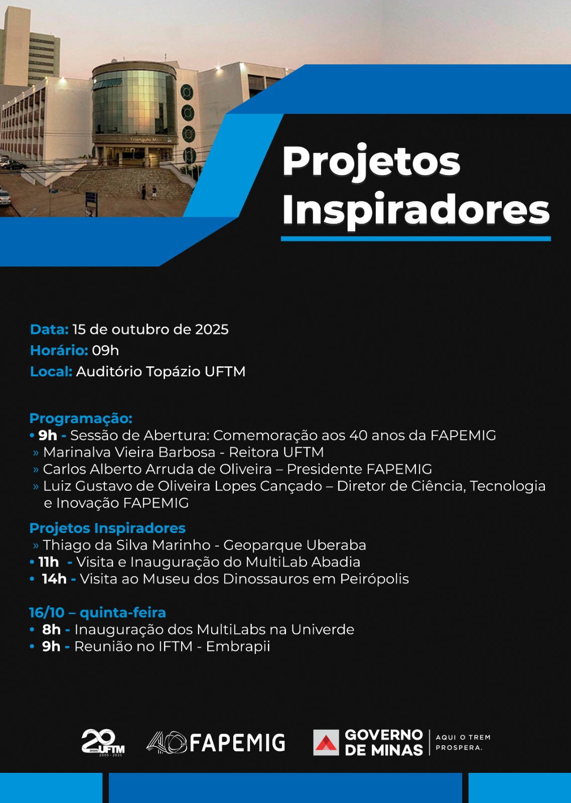 O evento será realizado no Auditório Topázio da UFTM a partir das 9h O evento será realizado no...