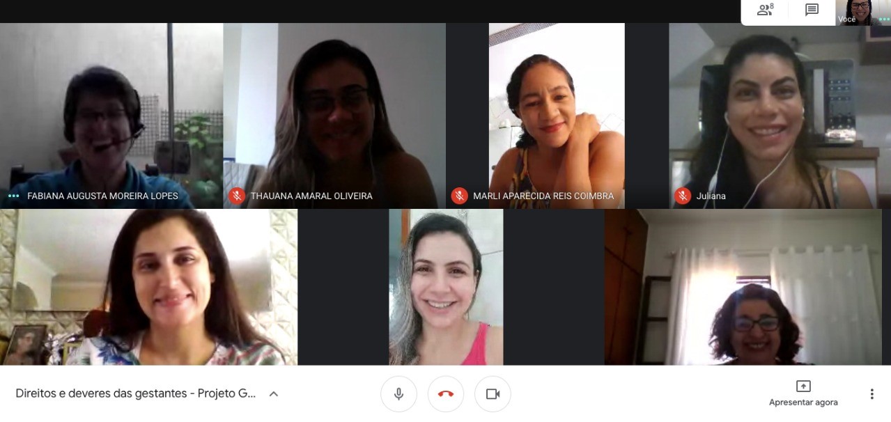 O Projeto Gera Vida, realizado pelo Departamento de Atenção à Saúde do Servidor - DASS/PRORH, por meio da Divisão de Vigilância e Promoção realizou nesta sexta-feira, 22, o seu primeiro encontro virtual que teve como tema central “Direitos e deveres das gestantes”.O evento foi realizado por meio da plataforma Google Meet e foi ministrado pela assistente social Ione Ribeiro, com a participação da enfermeira do DASS Fabiana A Moreira Lopes, da psicóloga, Kelly Karina Fiomari e da técnica de enfermagem do DASS Marli Aparecida Reis Coimbra.