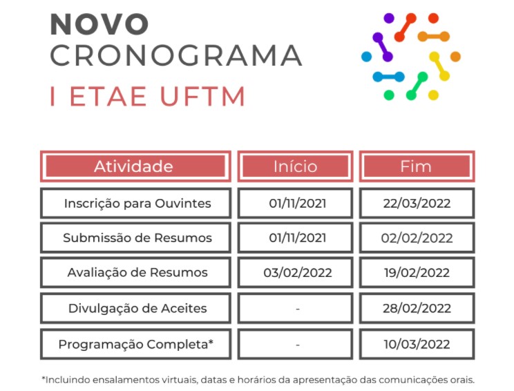 *De 22 a 24 de março de 2022 ocorrerá na Universidade Federal do Triângulo Mineiro o I Encontro de Técnicos Administrativos em Educação da UFTM – ETAE: contribuições para o desenvolvimento científico e institucional.