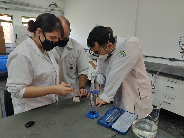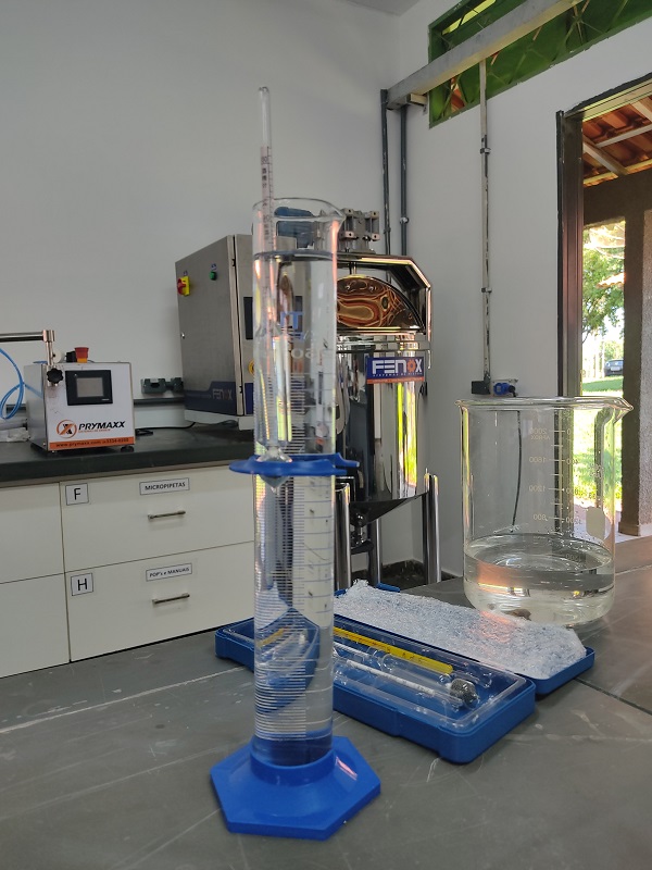 Desde maio de 2020, já se buscava fomento para aquisição de um maquinário específico que possibilitasse a produção do álcool em gel. “Diferentemente de formulações em estado líquido, o gel quando produzido em maiores quantidades, como 100 até 200 litros por lote, necessita de mecanização e instrumentação. Durante essa busca, o grupo permaneceu com as produções e doações do álcool glicerinado, utilizando um equipamento adaptado, por mais de um ano, sendo a última produção em 18 de junho de 2021, concluindo o total de 5.216 litros produzidos e doados”, contou o professor Lucas Ferreira de Paula, docente do curso de Química e coordenador do projeto de extensão.