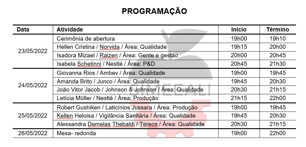 A transmissão será realizada pelo Canal do YouTube do Centro Acadêmico do curso de Engenharia de Alimentos.