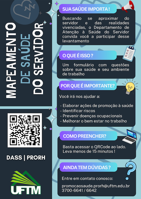 Sua participação é fundamental para a melhoria da saúde e bem-estar dos servidores da instituição. Agradecemos por considerar este convite e por contribuir para a construção de um ambiente de trabalho mais saudável.