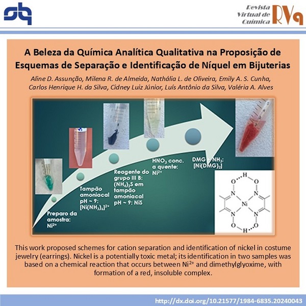 Os resultados do Projeto de Ensino da UFTM “A Beleza da Química Analítica Qualitativa na Proposição de Esquemas de Separação e Identificação de Níquel em Bijuterias” culminaram na publicação de um artigo, intitulado como o projeto, na seção Educação da Revista Virtual de Química.