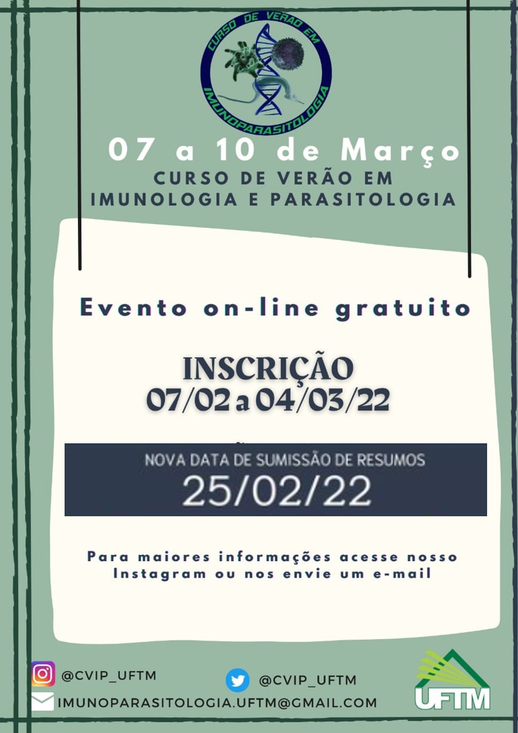 Entre os dias 7 e 10 de março deste ano ocorrerá na UFTM o Curso de Verão em Imunologia e Parasitologia – CVIP. Em seu 9º ano de realização, o CVIP, que é vinculado ao Programa...